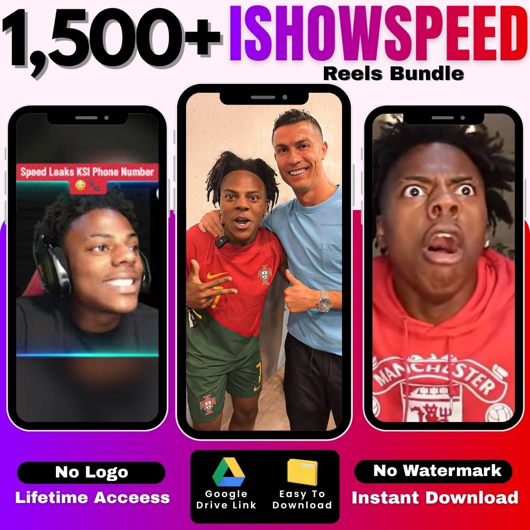 If you want to supercharge your social media growth with high-energy, funny, rage-filled, meme-worthy content, the 1500+ IShowSpeed Reels Bundle is the perfect viral pack for you. This bundle is loaded with IShowSpeed’s funniest reactions, iconic moments, rage clips, screaming memes, football edits, Ronaldo edits, and more — all ready to upload instantly.