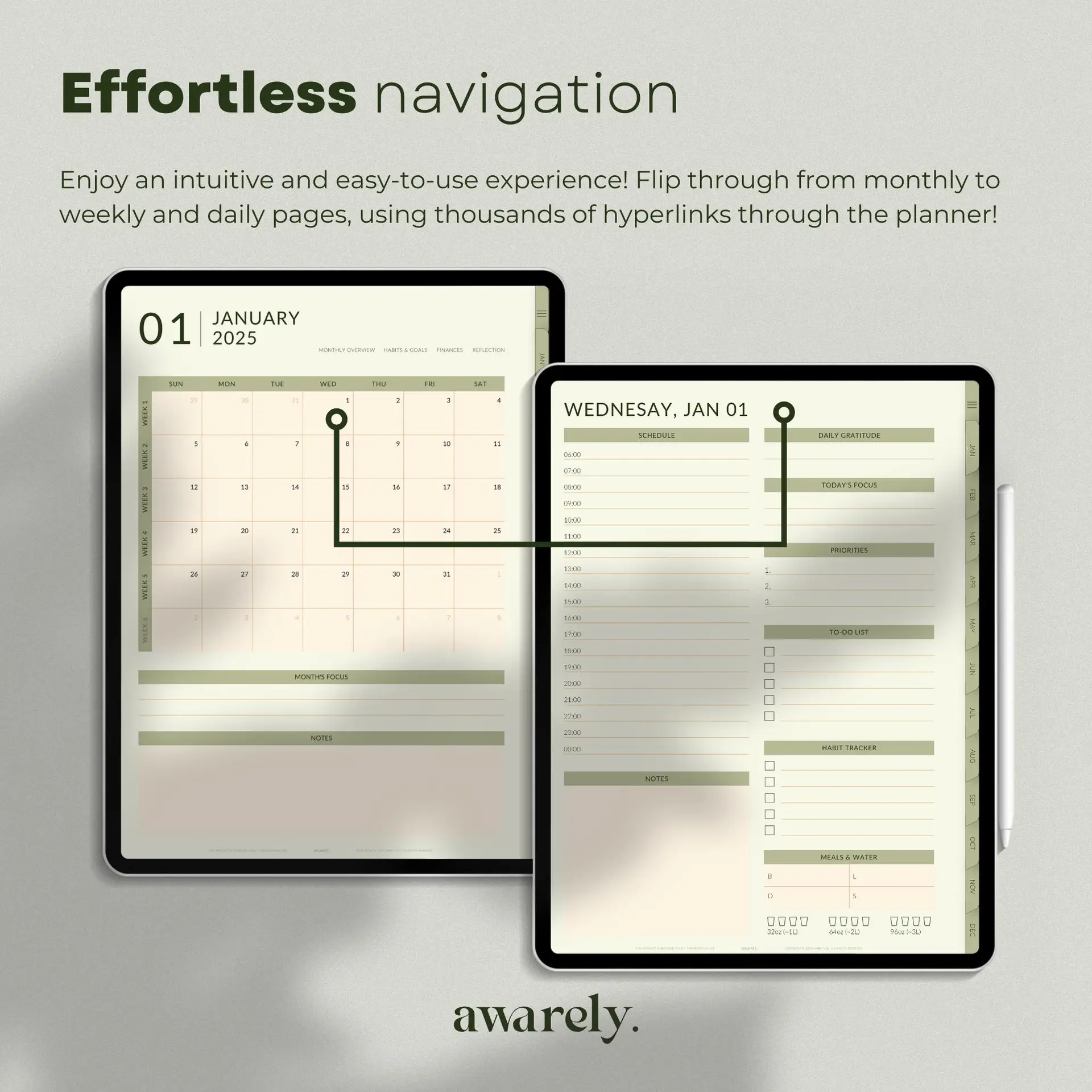 Navigate effortlessly through your planner with clickable tabs, buttons, and sections. No more endless scrolling—find what you need with just a tap.